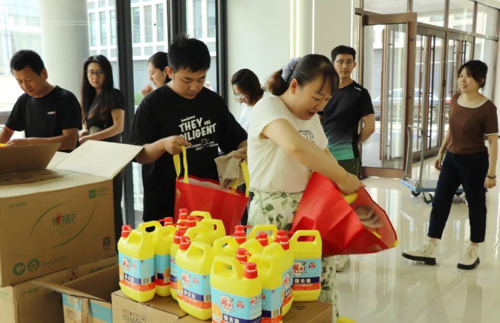 本次发放的福利包含洗衣液、洗洁剂、牙膏等生活必需品,在炎炎夏日为大家驱散暑气、送来贴心慰藉。